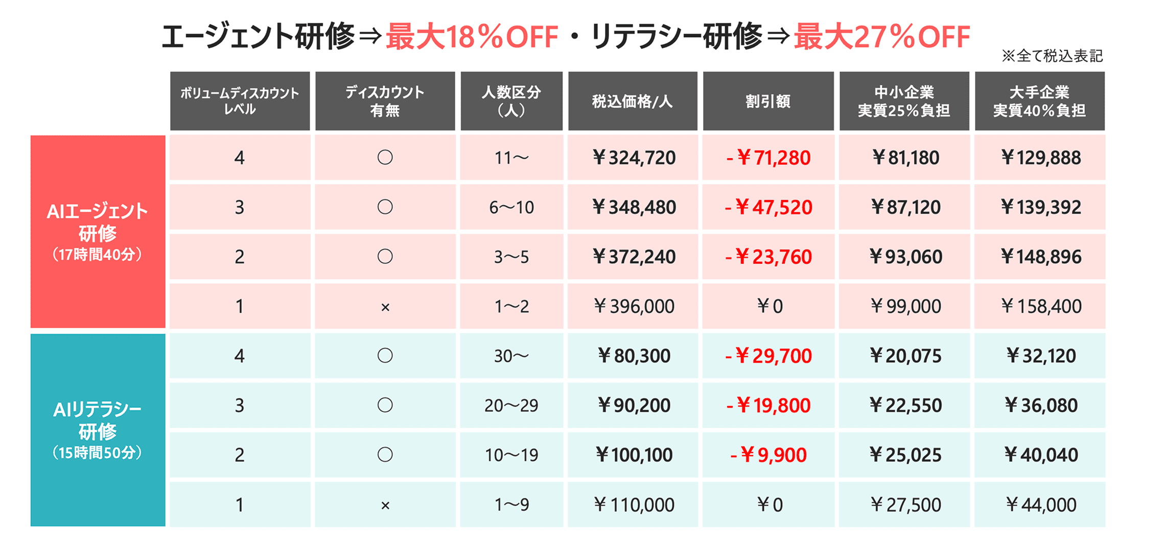 受講人数に応じてボリュームディスカウントもご用意!